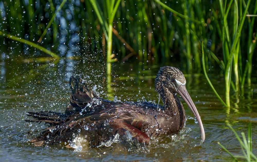 Zwarte Ibis neemt een lekker bad