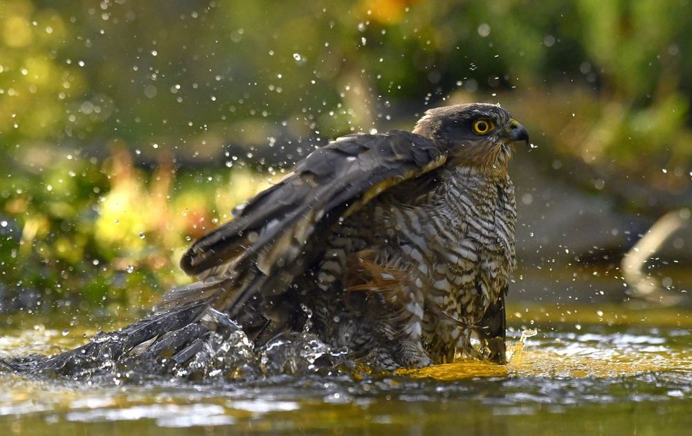 De sperwer kwam even een bad nemen. En nam daar even tijd voor.