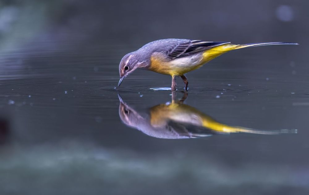 Tijdens een verblijf in een foto hut in Zuurberg kwam deze Grote gele kwikstaart even langs. Als je goed kijkt zie je dat hij op zoek is naar de kleine mugjes die op het water drijven.