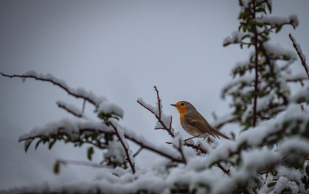Zoveel sneeuw ! Zoeken waar roodborstje in de tuin was en vlug foto gemaakt