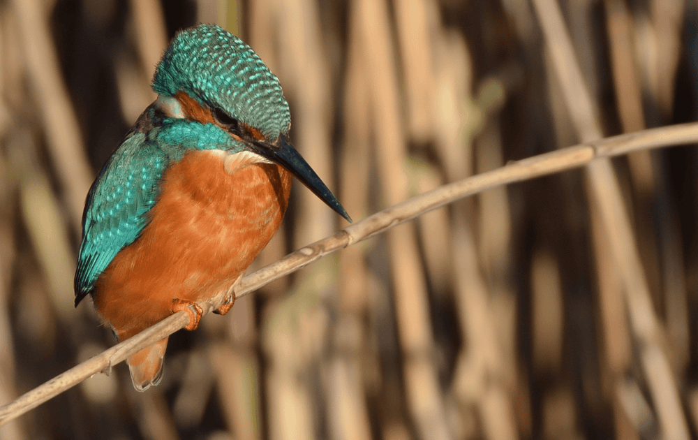Deze ijsvogel kwam ik met mijn Camera tegen op een koude ochtend in de Oostvaardersplassen, en hij was echt aan het genieten van het zonnetje boven het water op een rietstengel.