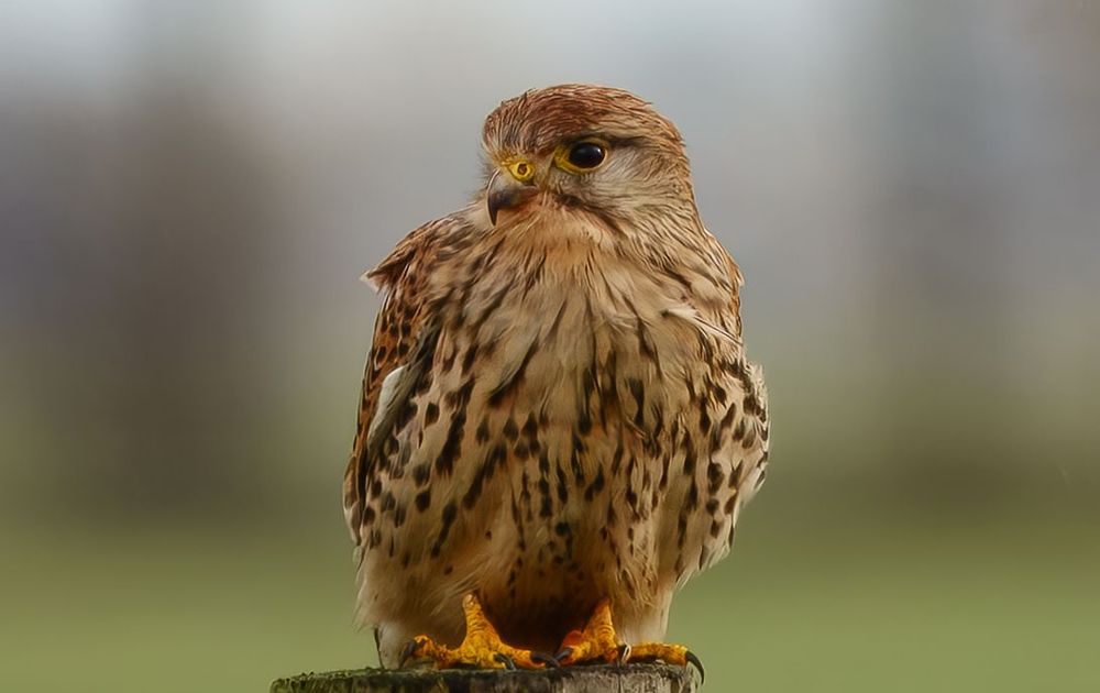 Nadat ik afgelopen vrijdag eerst al een biddende torenvalk mooi had vastgelegd, kwam ik aan het eind van de morgen dit exemplaar tegen dat gewoon op haar paaltje bleef zitten. Ook toen ik de auto nog iets dichterbij plaatste, geen reactie in de vorm van wegvliegen. Ook toen een bezorger er met z'n bus maar nét langs kon, geen reactie, ze bleef gewoon zitten. Ik vond het wonderlijk én een buitenkansje. Staphorsterveld, 10 januari 2025