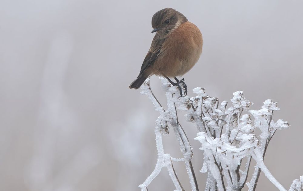 Deze roodborsttapuit ging van stengel naar stengel op zoek naar eten. Ondanks het koude weer wist ze verschijnende lekkere hapjes te vinden.
