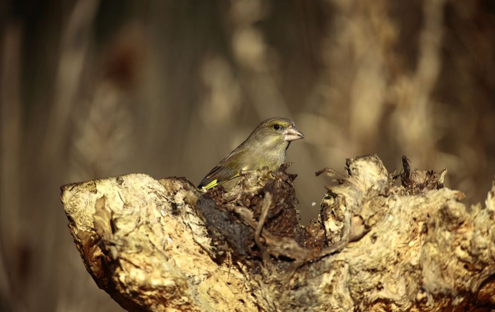 groenling op de boomstronk
