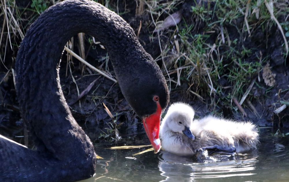 Wat een geluk. Op een mooie zonnige middag kwam ik een koppel prachtige zwarte zwanen tegen met hun jongen. Deze foto vond ik zelf erg schattig geworden.