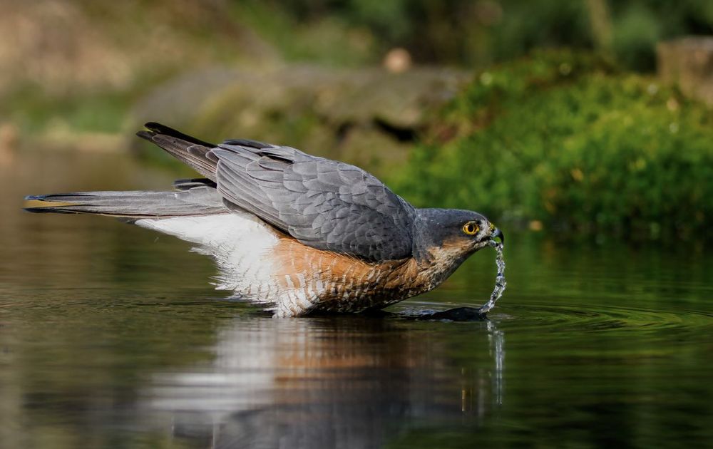 sperwer neemt een slokje