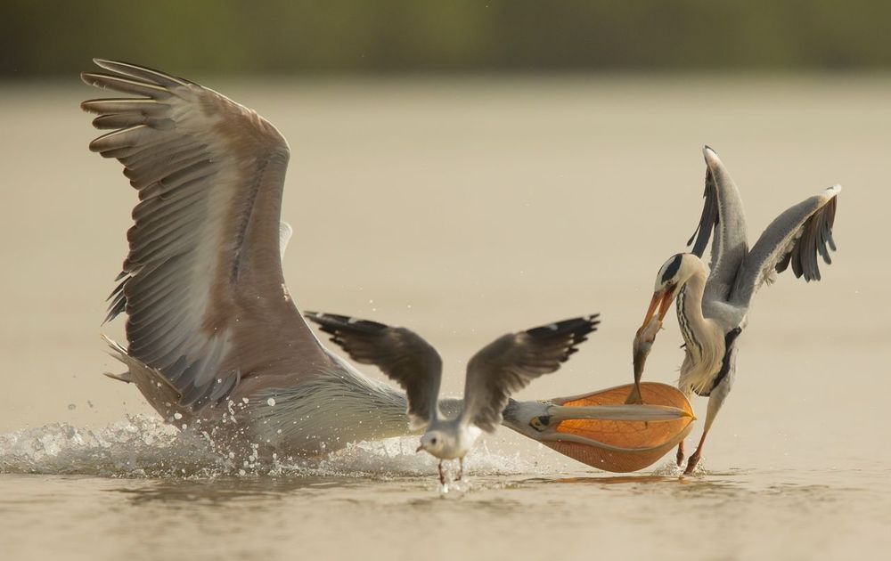 De Blauwe reiger ving een visdan is het altijd uitkijken. Er zijn altijd kapers op de kust.