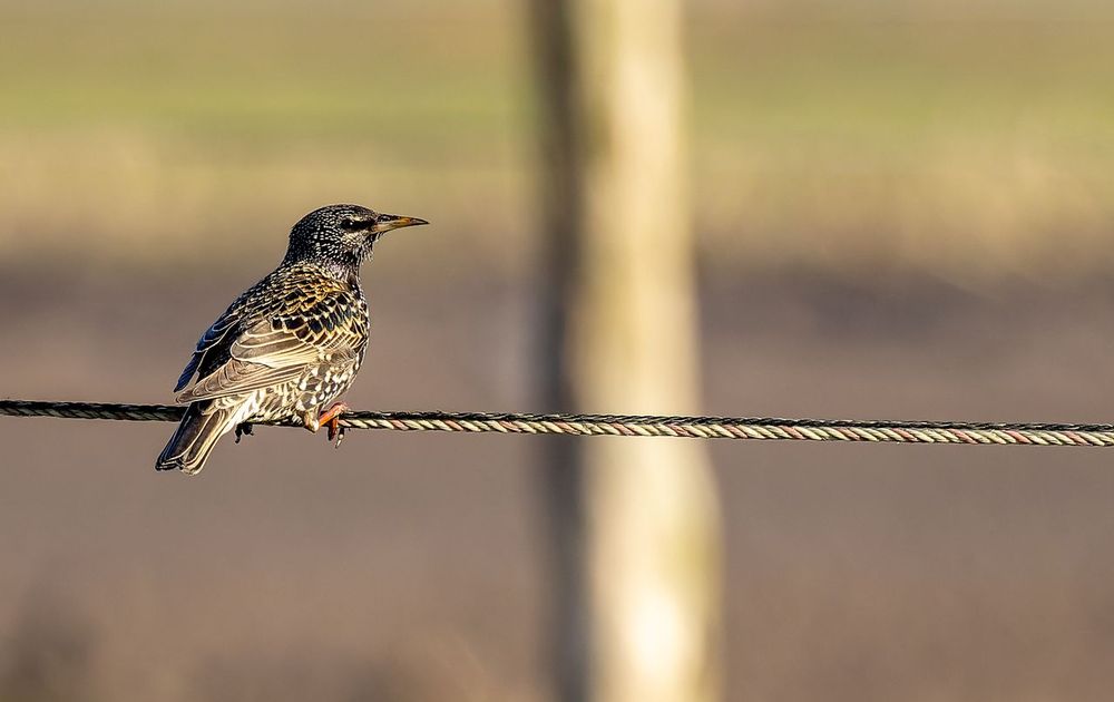 mooi kleurenpalet van deze spreeuw in de vroege lenteochtendzon.