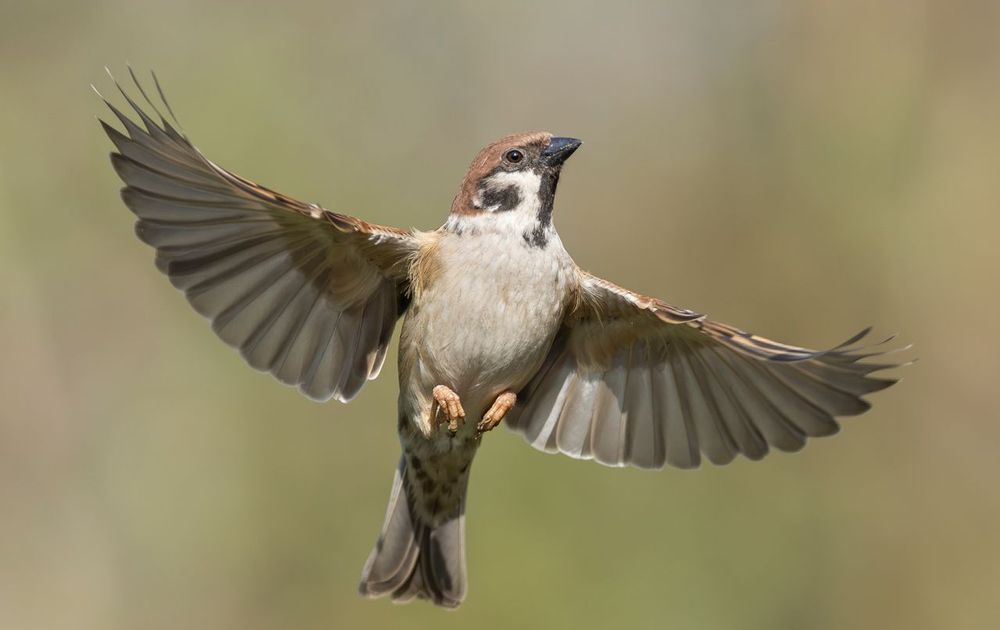 Dit ringmusje vloog al fladderend naar de voerkoker. Voor je t weet zijn ze alweer vertrokken.
