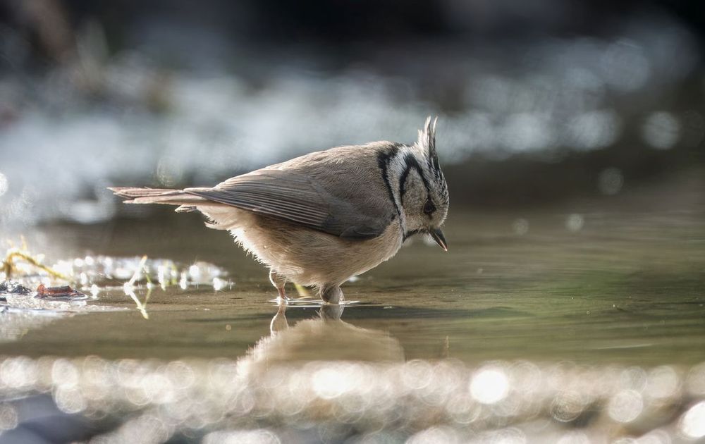 Zal ik?? Of toch niet?! Kuifmees overweegt een bad. Enterveen, 4 maart 2025