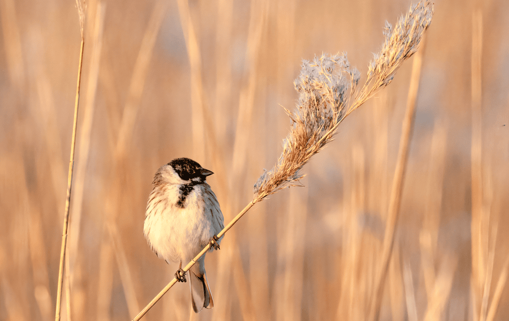 In het ochtendzonnetje besloot deze rietgors man te kijken waar de vrouwen bleven.