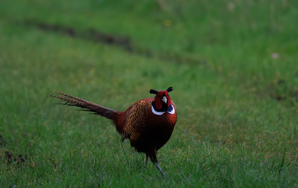 Toen ik mijn fiets neerzette om het veld in te gaan, liep deze fazant er. Terwijl ik foto's maakte, kwam meneer steeds dichterbij.