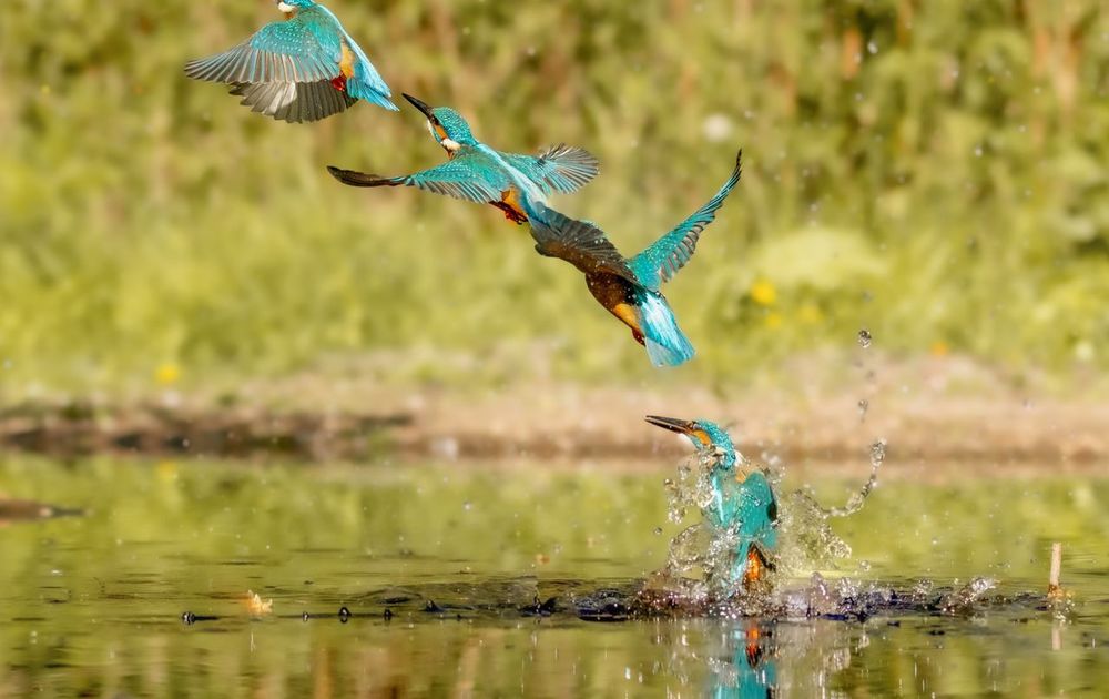 In burstmodus heb ik de duik van een ijsvogel vast geprobeerd te leggen. Vervolgens heb ik 4 foto's van de 'terugweg' (helaas zonder visje) tot 1 beeld gemaakt. Zo zie je mooi de afgelegde route!