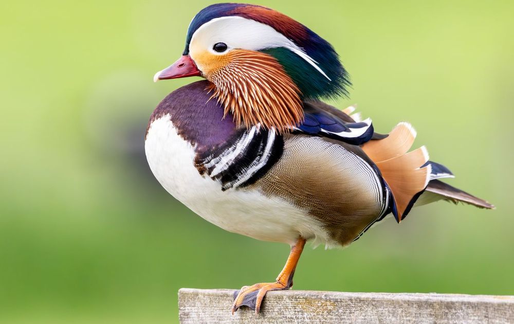 Fietsend van uit de polder naar het Buytenpark zie ik plotseling bij het wildrooster een Mandarijn eend zitten op het hek.