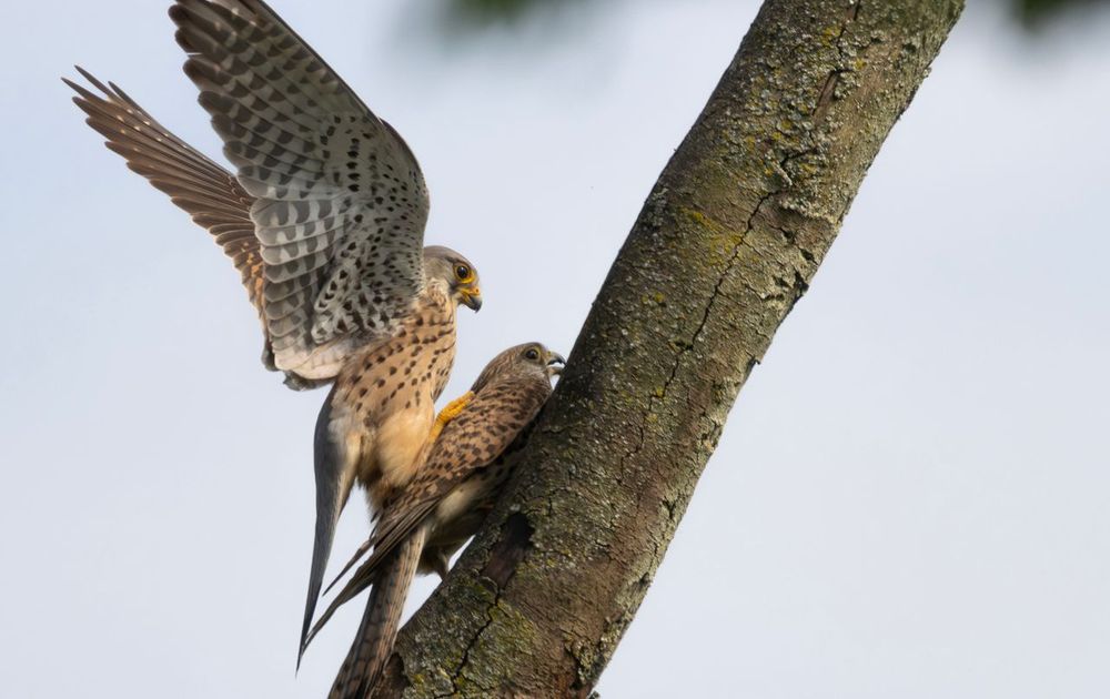 Een paartje torenvalken aan het paren