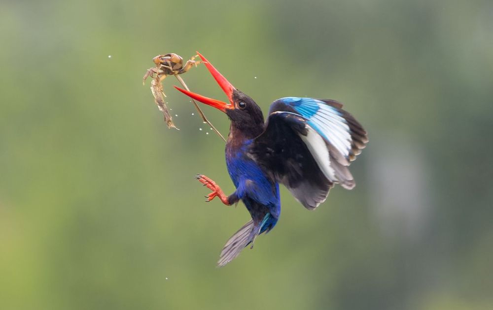 Na uren wachten in de intense hitte in de rijstvelden van Bali kwam ik eindelijk deze kleurrijke vogel tegen. Na een tijd dook hij de rijstvelden in, om omhoog te vliegen met een krab!