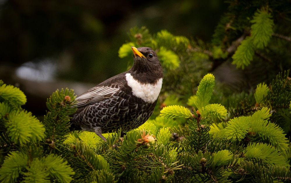 De Beflijster in een Denneboom op de top van de berg genaamd Champ du Feu. De foto is gemaakt op ongeveer 1100 meter hoogte.