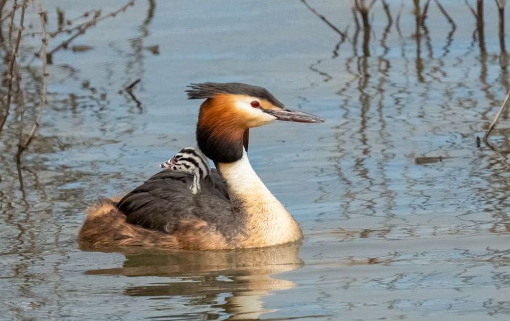 Ongestoord dobberend met z’n tweeën in de Markerwadden. Vol trots pronkend met die kleine op de rug.