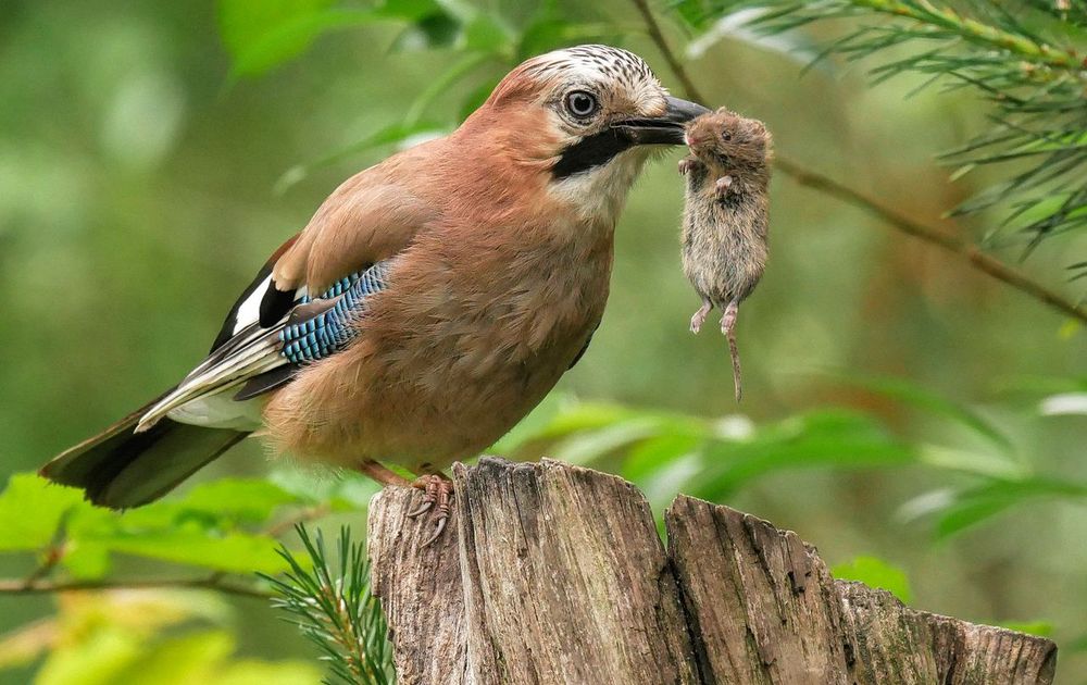 Afgelopen week gefotografeerd vanuit vogelhut 1 van Han Bouwmeester. Gaai ving vanuit het gras een levende muis en ging die op de paal zitten 'mangelen' alvorens ermee weg te vliegen.