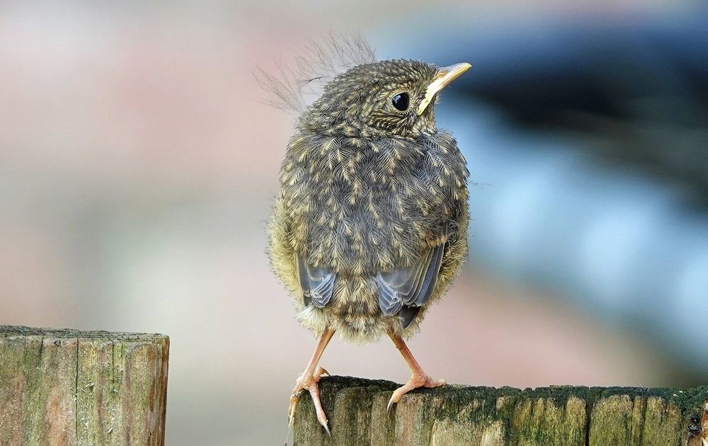 Pas uitgevlogen roodborstje kijkt de wijde wereld in!