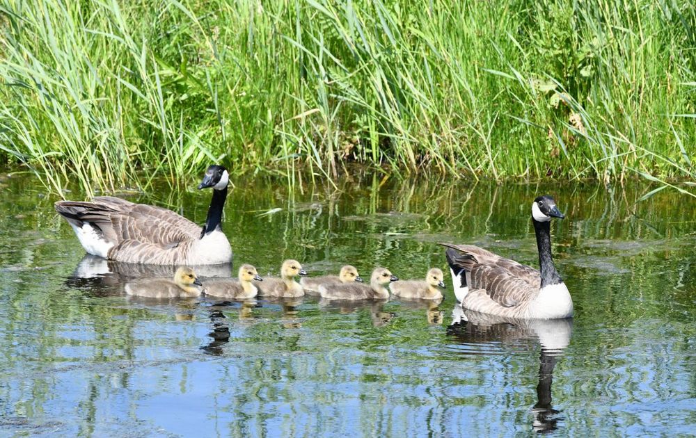 altijd schitterend om de grote Canadese ganzen net kuikens voorbij te zien zwemmen