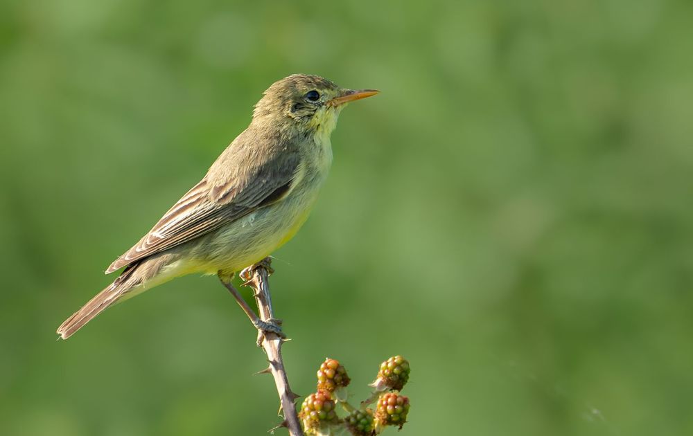 Meestal doet de spotvogel nogal geheimzinnig, maar deze vogel ging even vrij zitten op een takje. Soms heb je geluk!