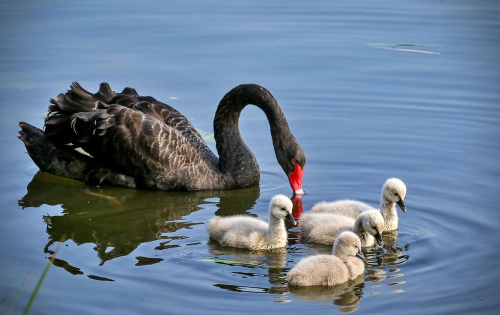 De zwarte zwaan is met zijn jongen op zoek naar een lekker hapje. Zo'n leuk gezicht altijd zo'n zwarte zwaan met zijn lichte jongen.