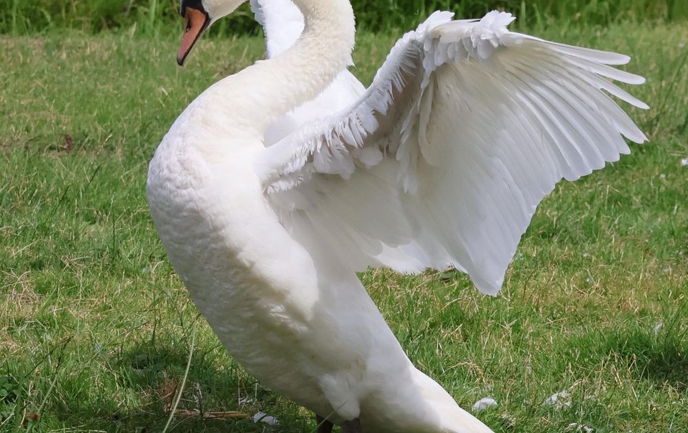 We moesten er even op wachten, maar na het wassen, sloeg hij toch zijn vleugels uit (er zijn 2 foto's die bij elkaar horen).