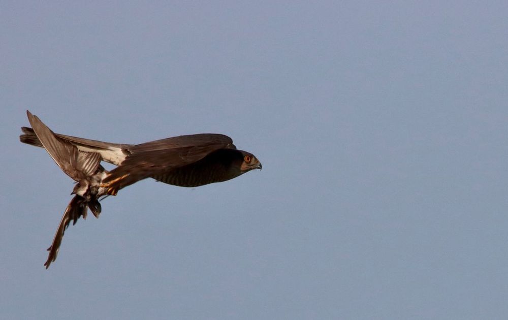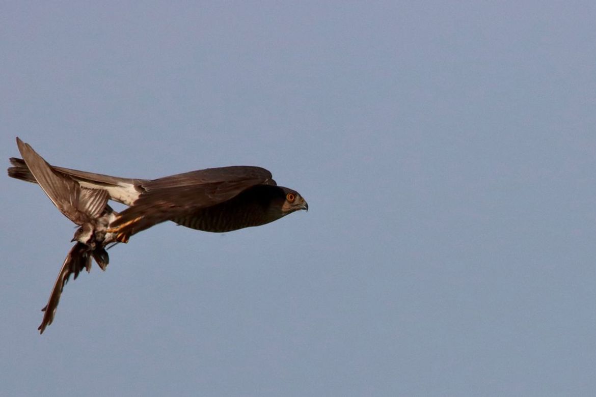 Bij het ringen van oeverzwaluwen kwam deze sperwer even kijken en sloeg er meteen een in de lucht