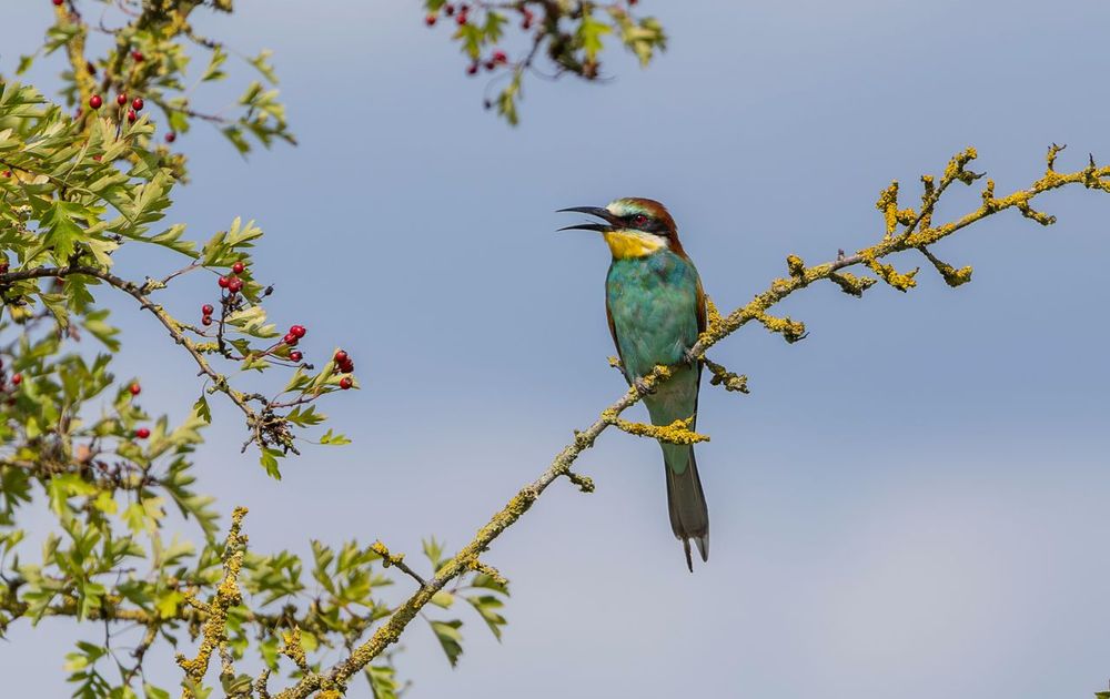 Het was ontzettend genieten van de bijeneters tijdens een wandeling in de Gelderse Natuur. Ze waren druk aan het foerageren boven het land en water , menige libel, bij en vlinder moesten het bezuren en belande in hun snavel. Echt een prachtig gezicht om mee te mogen maken .