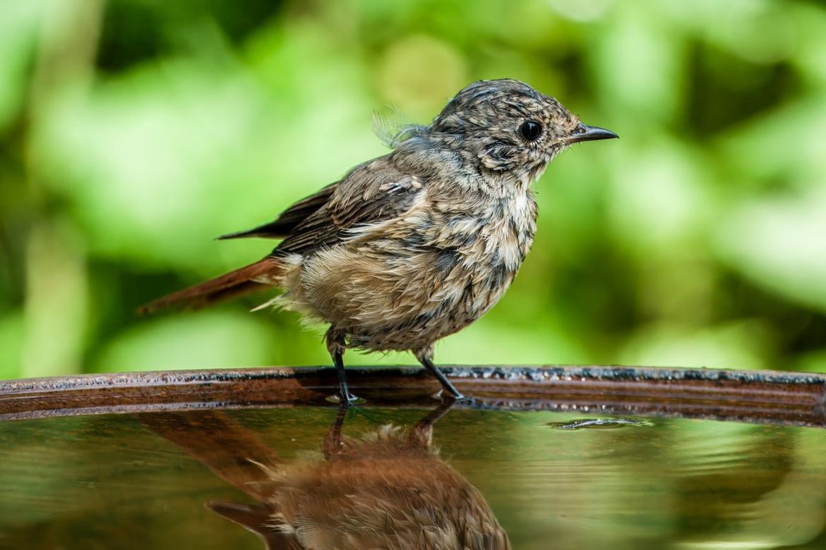 Dit jaar hebben we voor het eerst gekraagde roodstaarten in onze tuin te gast gehad bij het waterdrinkbakje. Ik heb het vrouwtje en het jong gezien, het mannetje blijft nog een uitdaging (voor volgend jaar denk ik). Dit is het jong, ik vind de donsveertjes in de nek zo aandoenlijk. Rouveen, 18 juli 2025