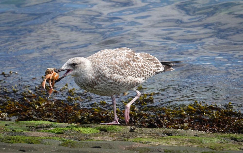 Jonge zilvermeeuw met heerlijk maatje