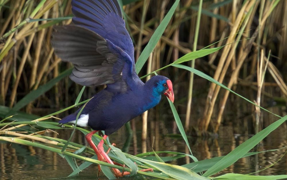 Bij deze pose laat hij mooi zijn vleugels zien
