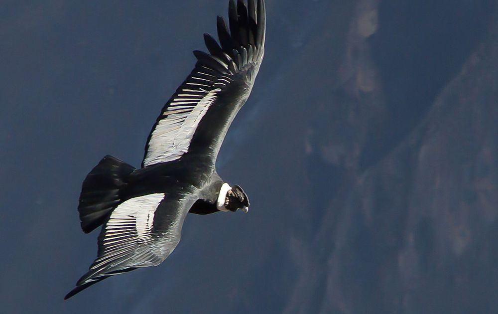 Condor in de vroege ochtendzon gebruikmakend van de thermiek, die de zon dan te weeg brengt. We moesten er wel om 5 uur voor uit bed komen om heel vroeg dit spektakel te kunnen aanschouwen.