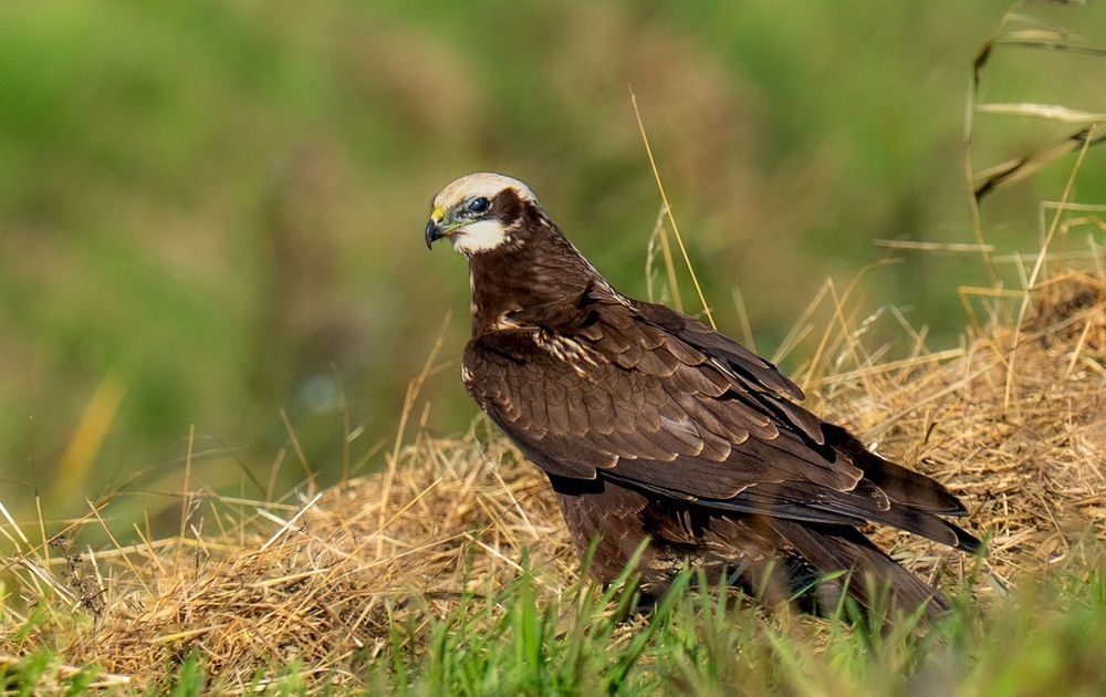 De Kiekendief ziet een Buizerd met een prooi en bedenkt of ze hier iets mee wil gaan doen.