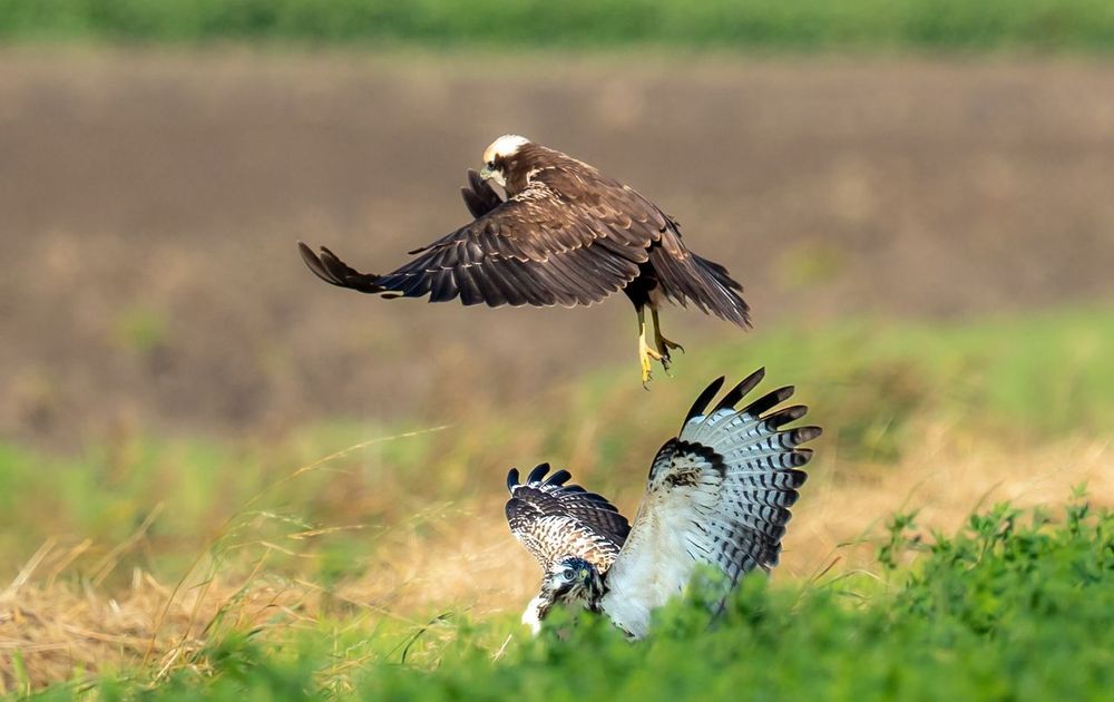 Deze twee zaten al in een soort State-of moment. De jonge Buizerd had een prooi bemachtigd en de Kiekendief wilde hier wel van mee profiteren. Dit mislukte. Deze strijd/ dans om elkaar heen duurde ongeveer een half uur. Prachtig om hier getuige van te mogen zijn geweest.