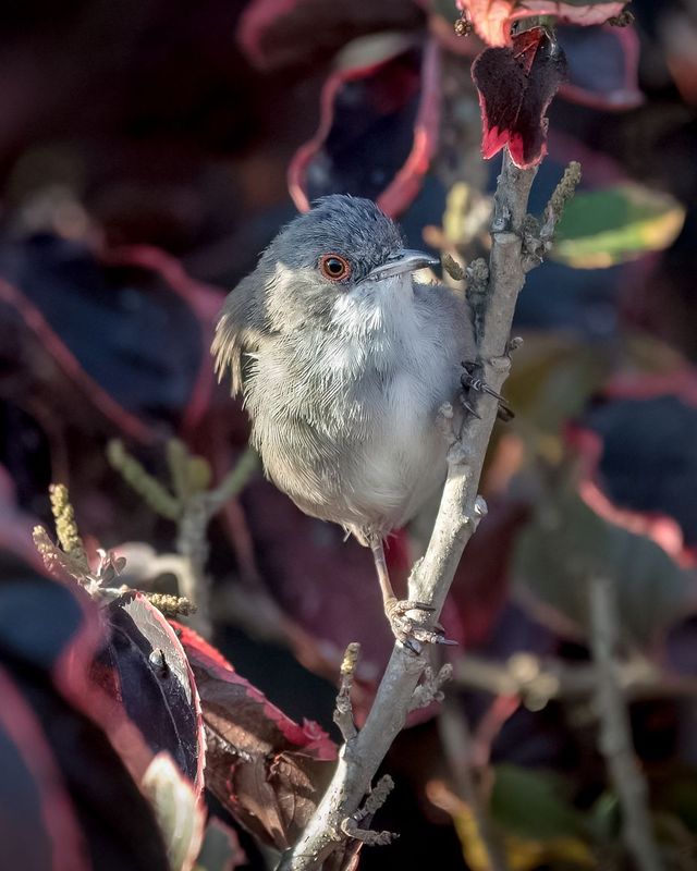 500mm, 1/1250sec, f5.6, iso 3200 Na een tijdje geduldig te hebben gewacht kwam dit exemplaar eindelijk uit de grote struik tevoorschijn en zat eventjes stil op een van de buitenste takjes. De prachtige rode oogring had een hypnotiserende werking...