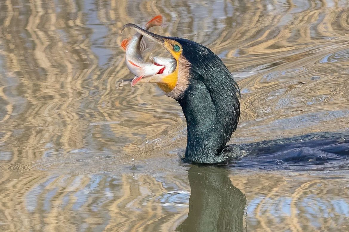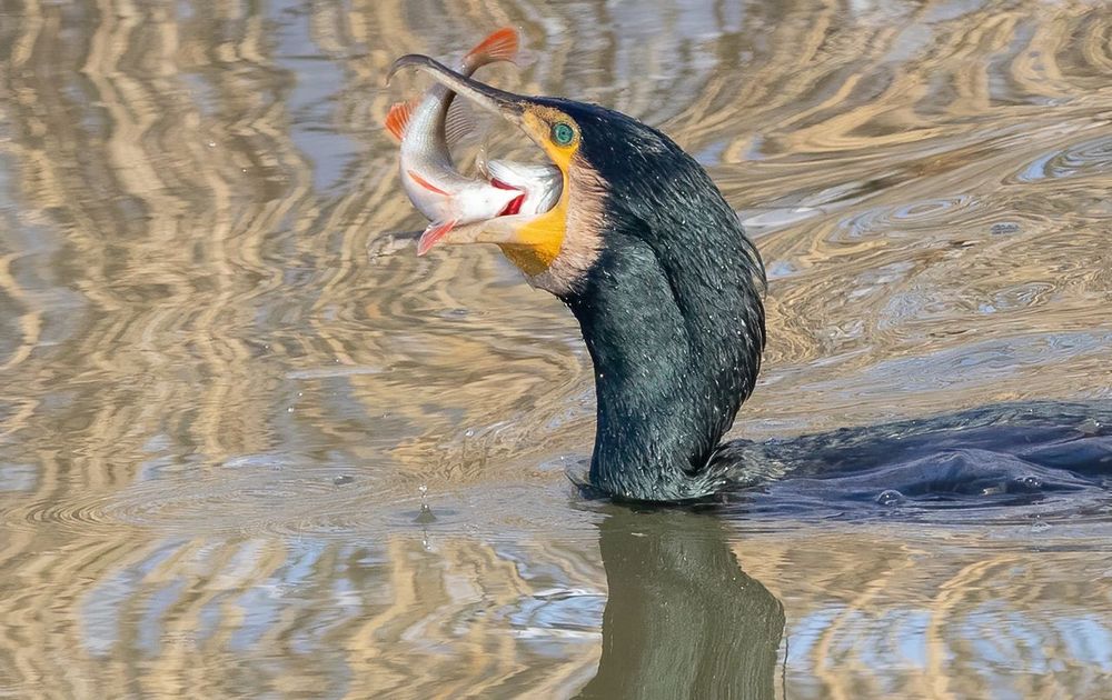 Deze aalscholver stiekem gevolgd bij het steeds maar weer duiken naar vis totdat het raak was en hij/zij een baars te pakken had.