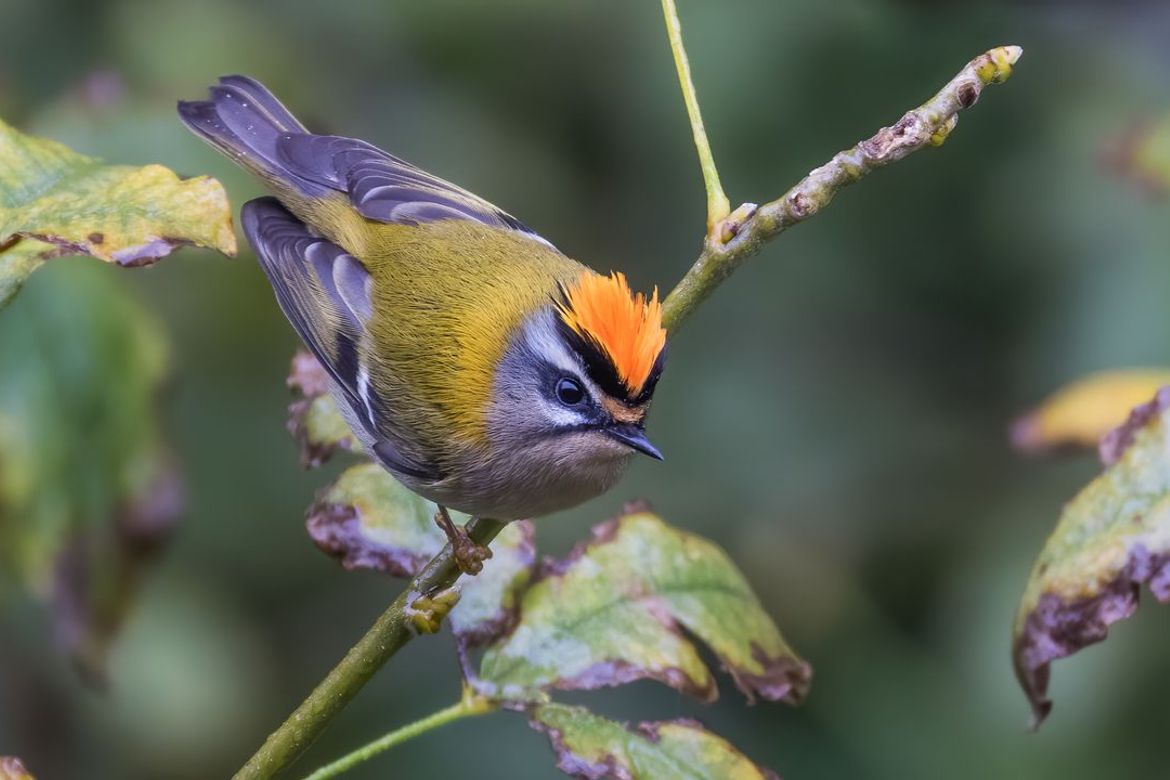 Vanaf mijn balkon zijn regelmatig vuurgoudhaantjes te zien, soms wel elke dag. Dit geeft mij de kans om ze op alle mogelijke manieren vast te leggen. Hier laat het mannetje duidelijk zien waar hij z'n naam aan heeft te danken.