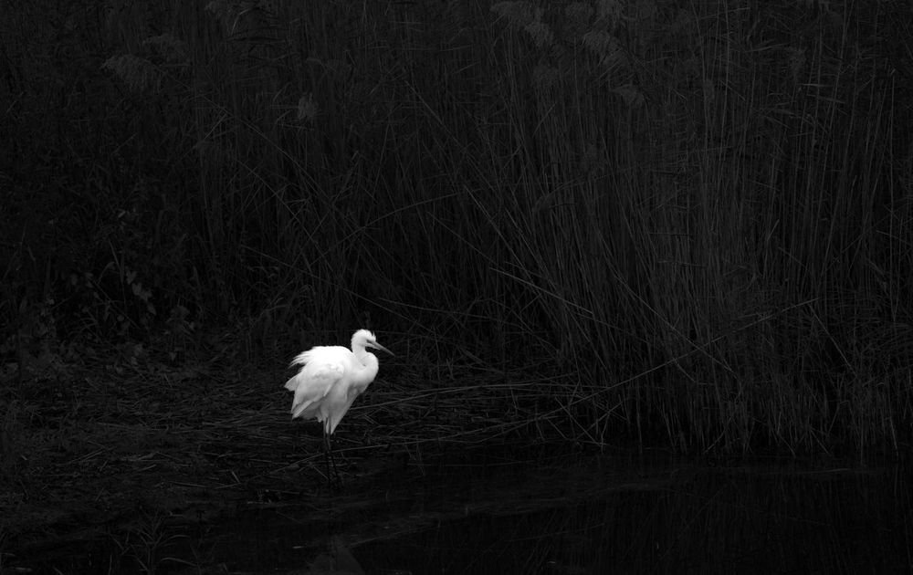 De zilverreiger zat in prachtig licht bij de waterkant. Ik heb gekozen voor zwart wit om de reiger nog meer naar voren te laten komen in het verenkleed