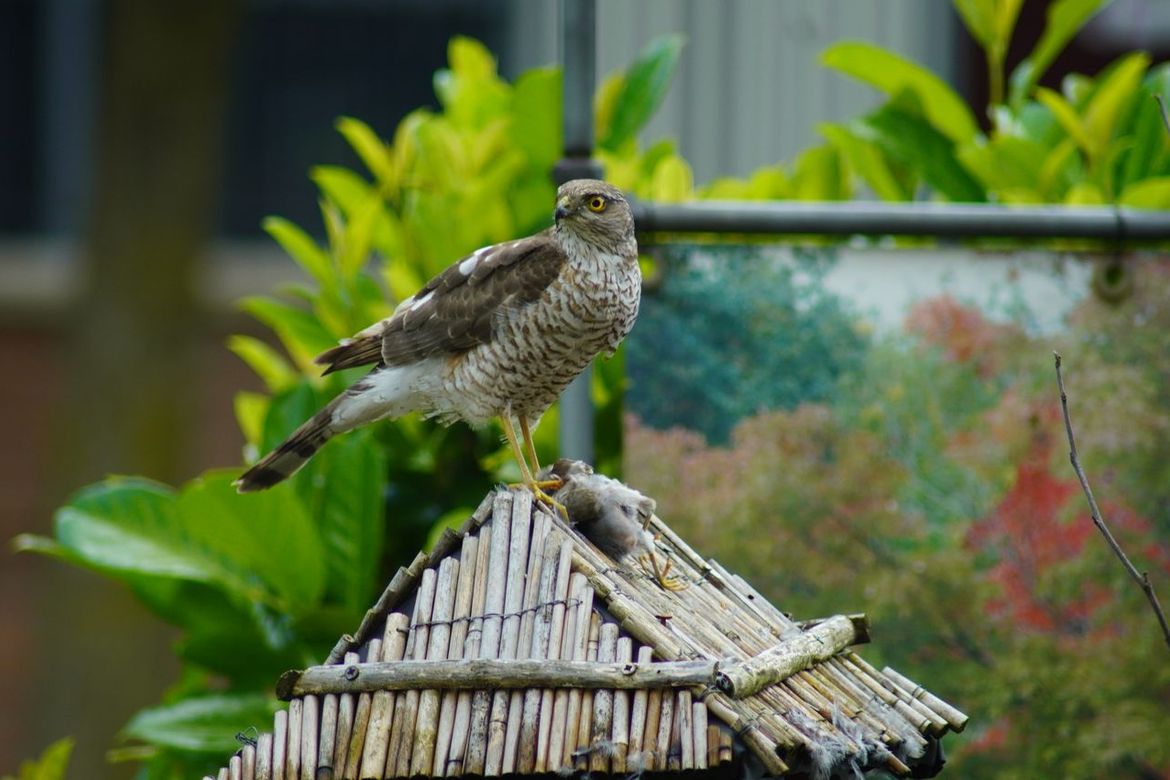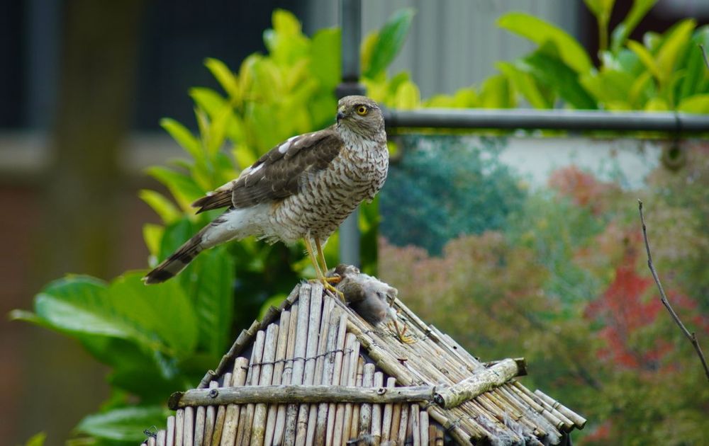 tijdens tuinkijken ,plotseling een jagende sperwer op ons huisje gespot met een dode mus op het menu waren fantastische minuten kijkplezier, natuur deed z'n werk