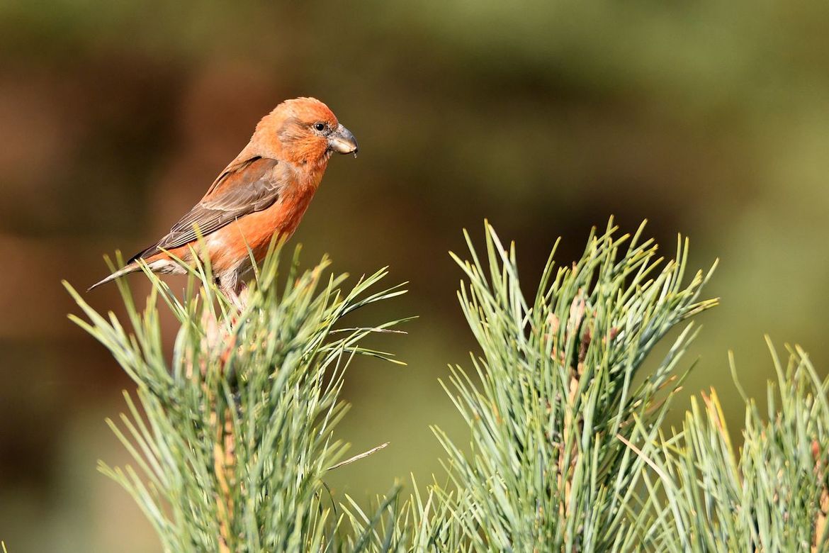 Een paar jaar terug bivakkeerde een groep grote kruisbekken op de Elspeterheide. Na een rondvlucht gingen ze in de lage dennetjes zitten.
