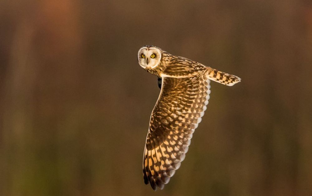 Deze velduil was op jacht naar muizen, maar hield alles in de gaten, zelfs een fotograaf in de verte.