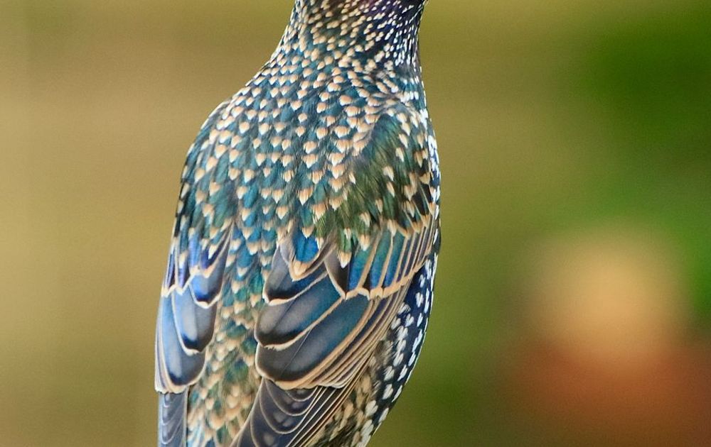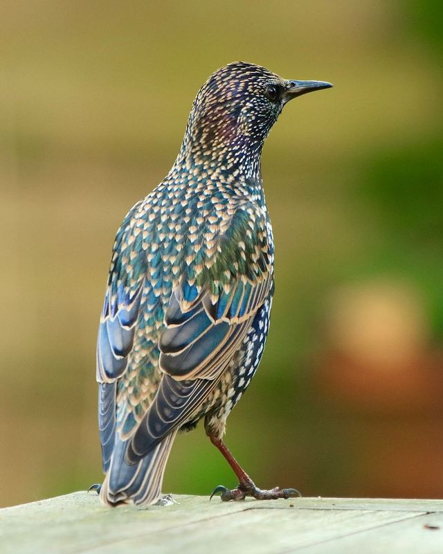 Deze Spreeuw kwam zijn kleurenpracht even showen op de tuintafel.