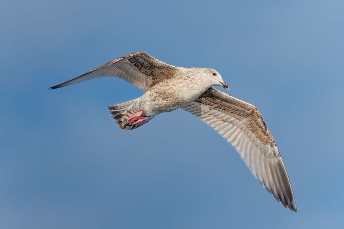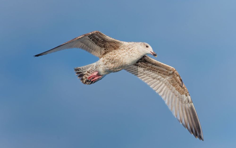 Deze jonge Zilvermeeuw liet zich op de zeewind meevoeren over de Zuidpier van IJmuiden, op zoek naar een maaltje.