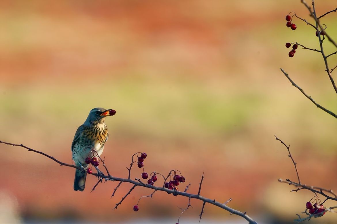 Deze kramsvogel kreeg geen genoeg van de bessen.