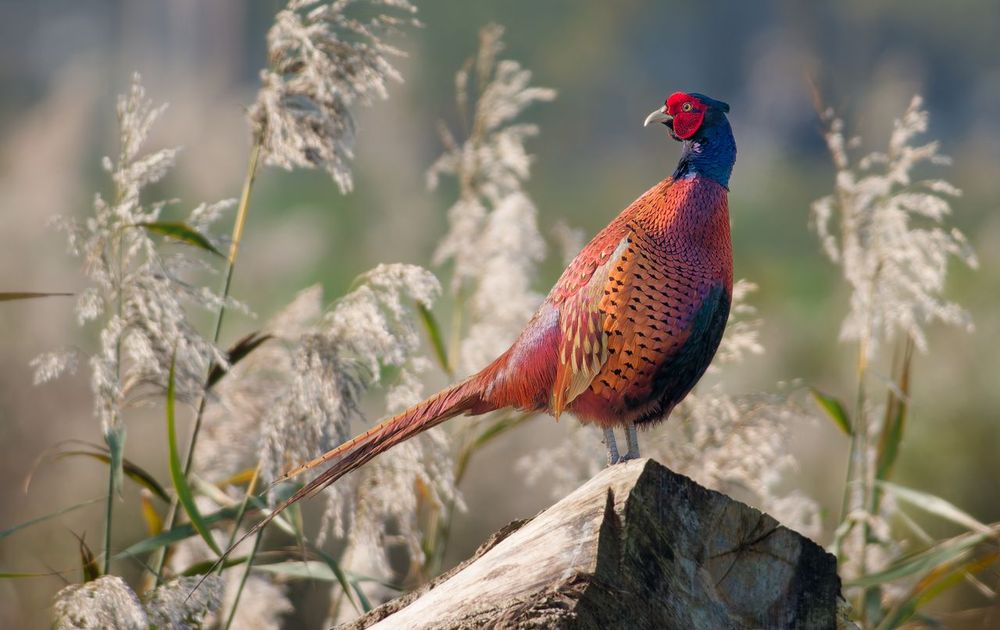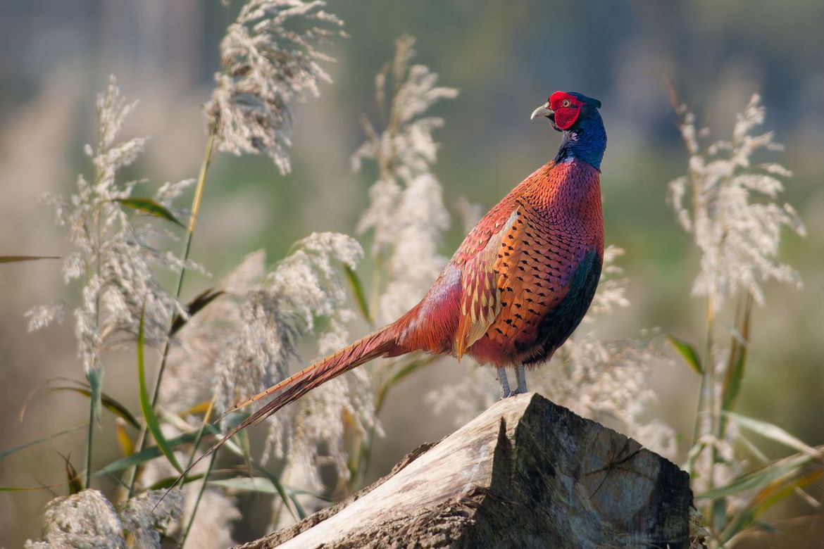 Het leek of deze Fazant speciaal voor mij stond te poseren op een boomstam om zijn prachtig gekleurde verenkleed te tonen.