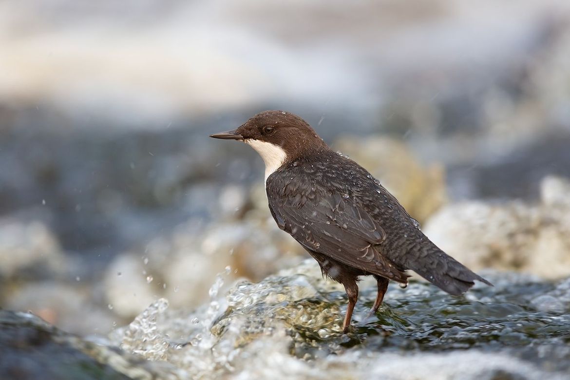 De Waterspreeuw was druk met waterbeestjes vangen.