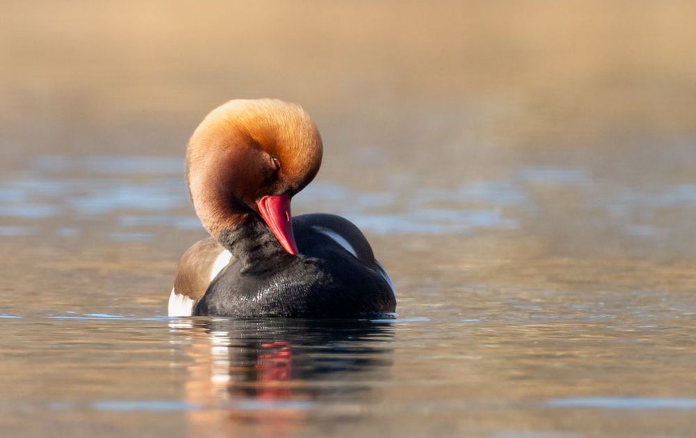 Op een mooie winterdag kwam ik een groep krooneenden tegen in de Amsterdamse Waterleidingduinen. Het zijn prachtige eenden met hele mooie kleuren. Deze begon rustig te poetsen, wat zorgde voor leuke beelden. Ik heb plat op m'n buik gelegen om op level te komen. Leuke ervaring!