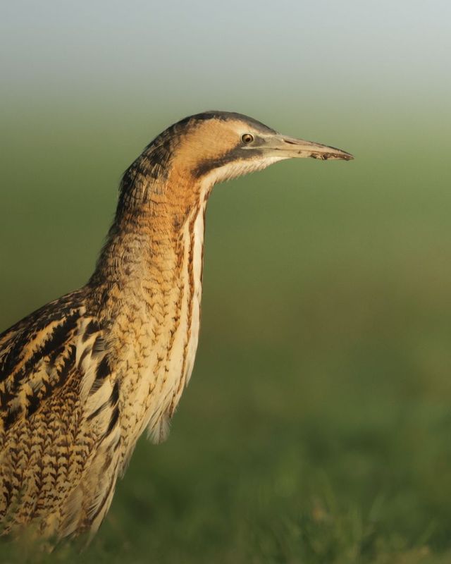Naarmate de mist langzaam optrok gaf de polder haar geheimen prijs en werd de roerdomp langzaam steeds beter zichtbaar.
